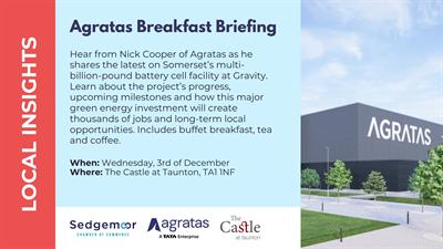 Somerset is set to play a central role in the future of green energy. Join us for a breakfast briefing with Nick Cooper from Agratas, where we will hear the latest updates on the multi-billion-pound battery cell manufacturing facility being developed at the Gravity Smart Campus near Bridgwater.
