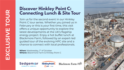 The HPC site continues to evolve at pace, and this exclusive guided tour is a unique opportunity to see the latest progress first-hand. Combined with a lunch at the beautiful Blackmore Farm, this half-day experience blends networking opportunities with a rare behind-the-scenes look at the scale and significance of Hinkley Point C.